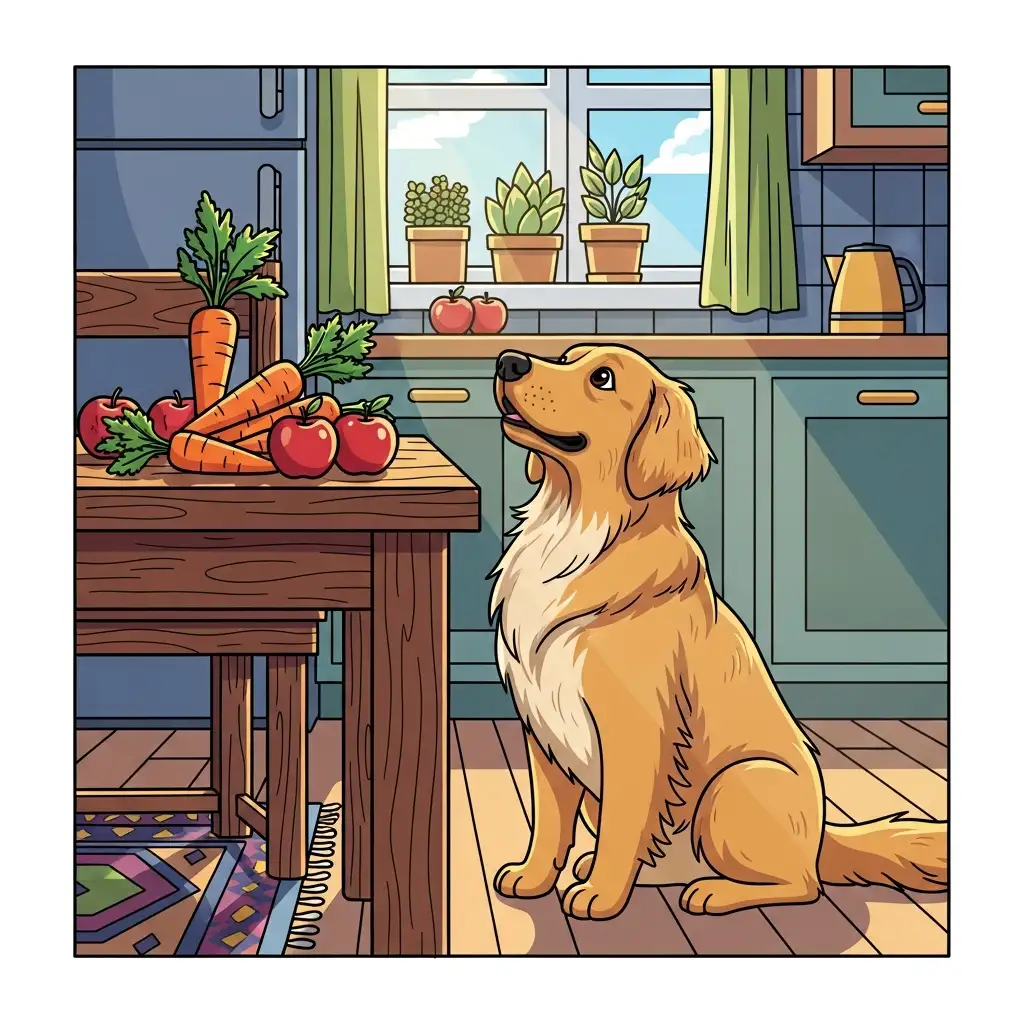 - 당근: 비타민 A와 베타카로틴이 풍부하여 시력 보호와 면역력 강화에 도움을 줍니다. 딱딱한 식감은 치석 제거에도 효과적입니다.