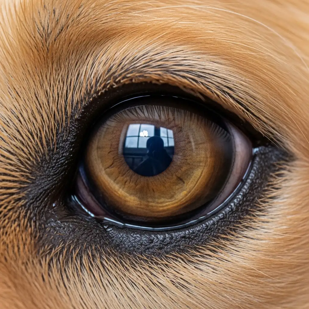 맑고 투명한 강아지의 눈을 보여주는 사진으로 반려동물의 눈 건강 상태를 정기적으로 확인하는 것이 중요함을 나타냅니다